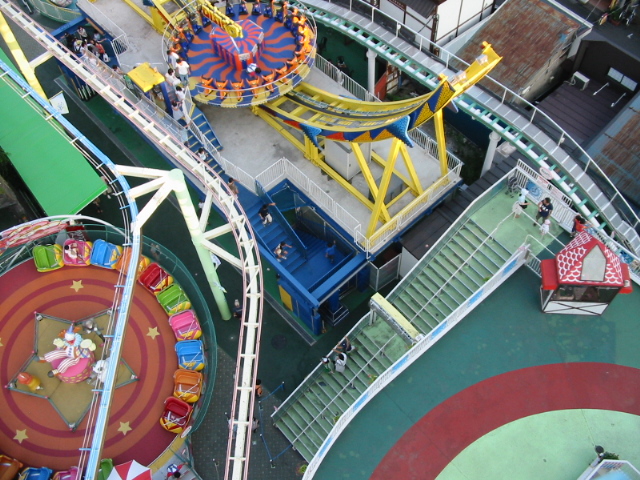 噂にたがわず、超怖いジェットコースターでした、たかだか45km/hのスピードで、一周25秒のコースターですが、民家にぶつかりそうなルートだし、1953年製という事で、ギシギシいうし、一周が短いので、アップダウンが強烈だし、都内23区のコースターの中では、ダントツっすね。