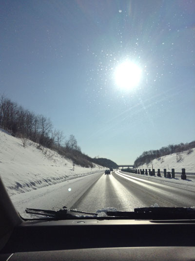 札幌は吹雪なのに、千歳に近づくにしたがって、ピーカンになっていきます。