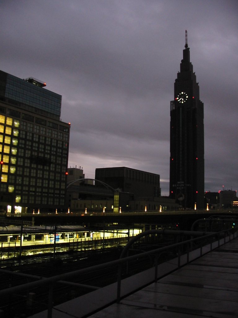 新宿駅のホームと、NTT Docomoビル