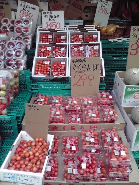 夕方に近所の「新宿八百屋」というお店で、晩飯の食材を調達しましたが、福島産佐藤錦(さくらんぼ)が激安でした。山形産の佐藤錦との価格差が凄いですね。