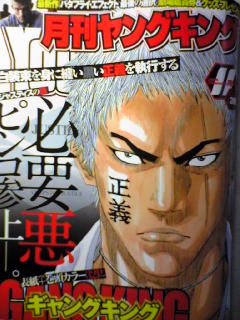 友人の武道家?格闘家?で、漫画家の、ぺん獣・やざま優作氏が原作をした漫画「極王」(きめおう)の第八話が、月刊ヤングキング11月号