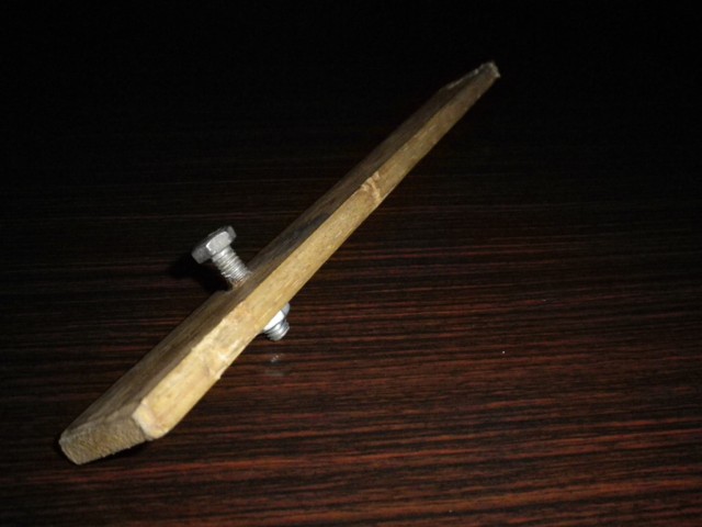 木の切れ端に、ボルトをつけただけのものです。