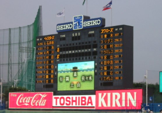 試合開始前には、キャラクターと、可愛いチアガール達のパフォーマンスや、球場内の観客を、球場のカメラで撮った映像を大画面で映し出し、観客を飽きさせない様に、色々と考えた脚色で、楽しかった。