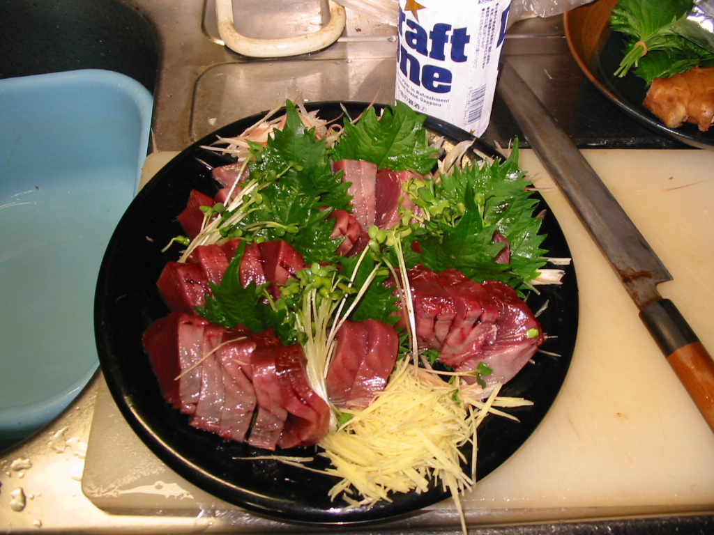 刺身にしようか、土佐作りしようか、たたきにしようか、カルパッチョにしようか、結構悩んだのだが、初物は、刺身が一番!!