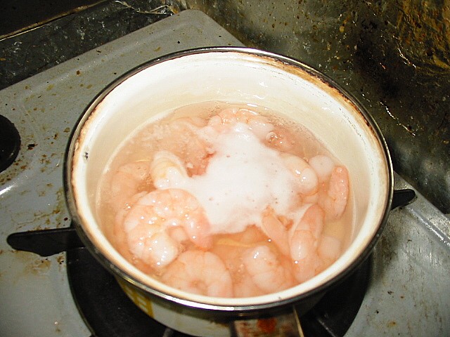 剥きえびをゆでます。